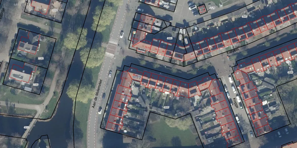 Het perceel waarop Karveel 63 staat heeft een oppervlakte van 3327 m². Dit is een zeer groot perceel. De perceeloppervlakte wordt geregistreerd door het Kadaster. Gedetailleerde informatie over de maten van dit perceel kunt u vinden in het rapport Kadastrale kaart met maatvoering van Karveel 63.