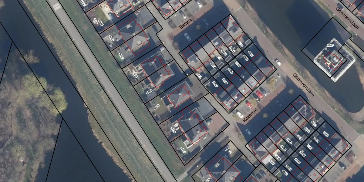 Het perceel waarop Kazemat 23 staat heeft een oppervlakte van 452 m². Dit is een groot perceel. De perceeloppervlakte wordt geregistreerd door het Kadaster. Gedetailleerde informatie over de maten van dit perceel kunt u vinden in het rapport Kadastrale kaart met maatvoering van Kazemat 23.