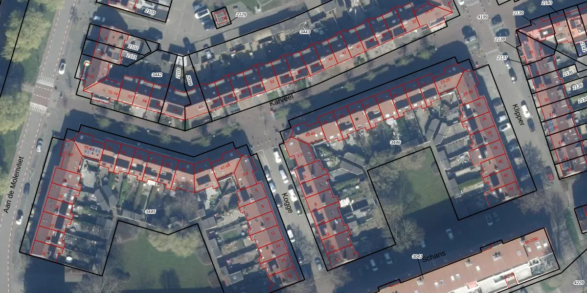 Het perceel waarop Kogge 1 staat heeft een oppervlakte van 3329 m². Dit is een zeer groot perceel. De perceeloppervlakte wordt geregistreerd door het Kadaster. Gedetailleerde informatie over de maten van dit perceel kunt u vinden in het rapport Kadastrale kaart met maatvoering van Kogge 1.