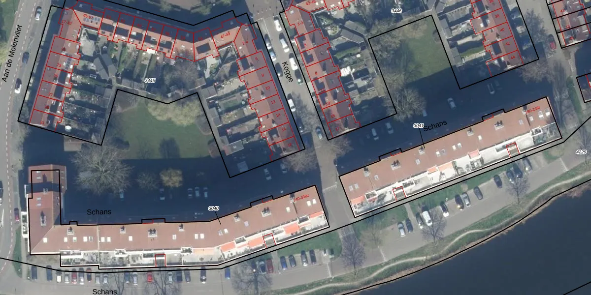 Het perceel waarop Kogge 18 staat heeft een oppervlakte van 3327 m². Dit is een zeer groot perceel. De perceeloppervlakte wordt geregistreerd door het Kadaster. Gedetailleerde informatie over de maten van dit perceel kunt u vinden in het rapport Kadastrale kaart met maatvoering van Kogge 18.