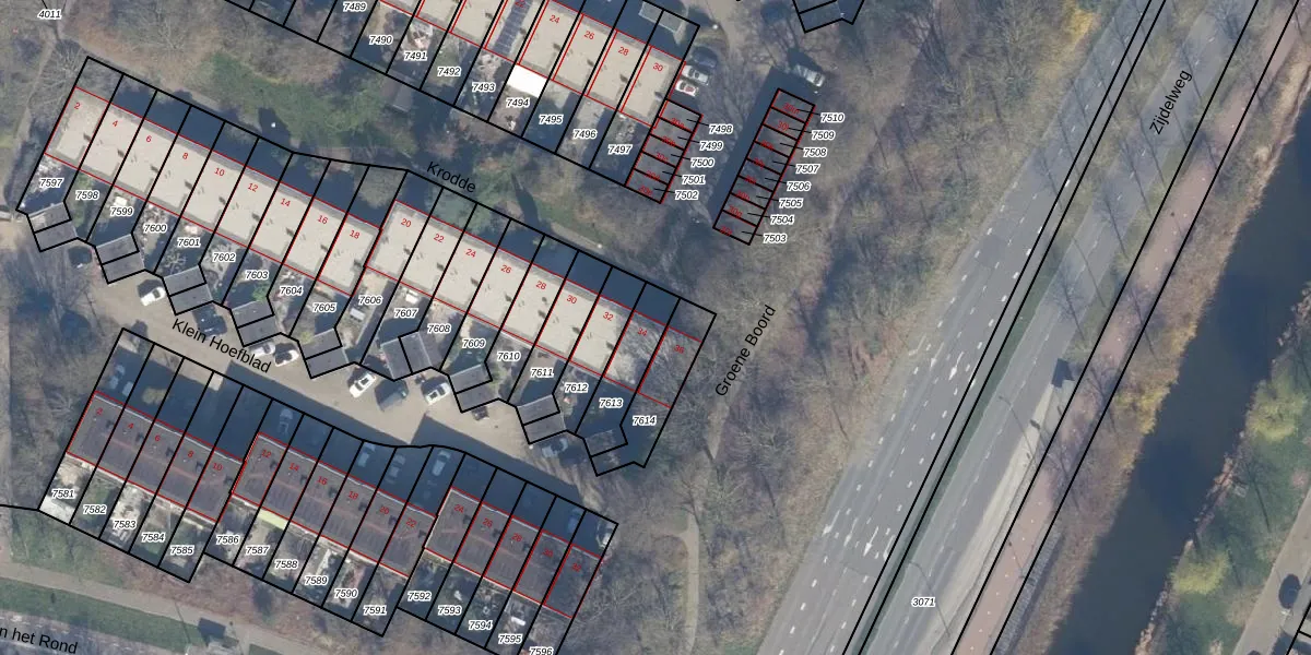 Het perceel waarop Krodde 34 staat heeft een oppervlakte van 156 m². Dit is een middelgroot perceel. De perceeloppervlakte wordt geregistreerd door het Kadaster. Gedetailleerde informatie over de maten van dit perceel kunt u vinden in het rapport Kadastrale kaart met maatvoering van Krodde 34.