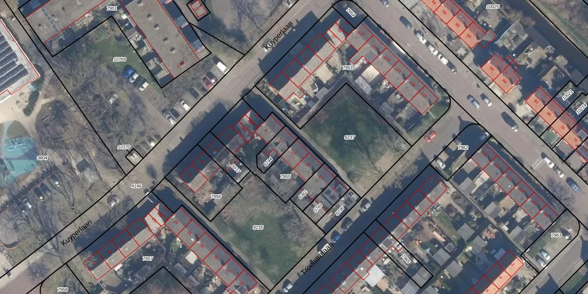 Het perceel waarop het adres ligt is UHN00-B-7955. De afkorting 'UHN00' staat voor kadastrale gemeente Uithoorn. De gemiddelde perceelgrootte in Uithoorn is 1535,35 m². Dit perceel is kleiner: de perceeloppervlakte bedraagt 546 m². Het grootste perceel in de kadastrale gemeente is 22,5 ha. Het kleinste perceel heeft een oppervlakte van 0 m². Er zijn 7 adressen aanwezig op het perceel. De huidige grenzen van het perceel zijn digitaal in de Basisregistratie Kadaster (BRK) geregistreerd op 17-02-2004.