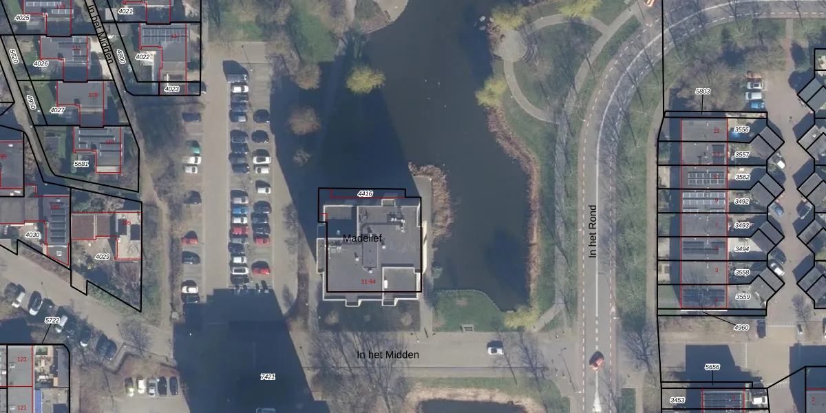 Het perceel waarop Madelief 21 staat heeft een oppervlakte van 579 m². Dit is een groot perceel. De perceeloppervlakte wordt geregistreerd door het Kadaster. Gedetailleerde informatie over de maten van dit perceel kunt u vinden in het rapport Kadastrale kaart met maatvoering van Madelief 21.