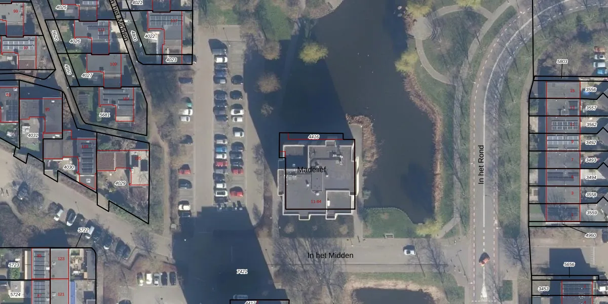 Het perceel waarop Madelief 66 staat heeft een oppervlakte van 579 m². Dit is een groot perceel. De perceeloppervlakte wordt geregistreerd door het Kadaster. Gedetailleerde informatie over de maten van dit perceel kunt u vinden in het rapport Kadastrale kaart met maatvoering van Madelief 66.