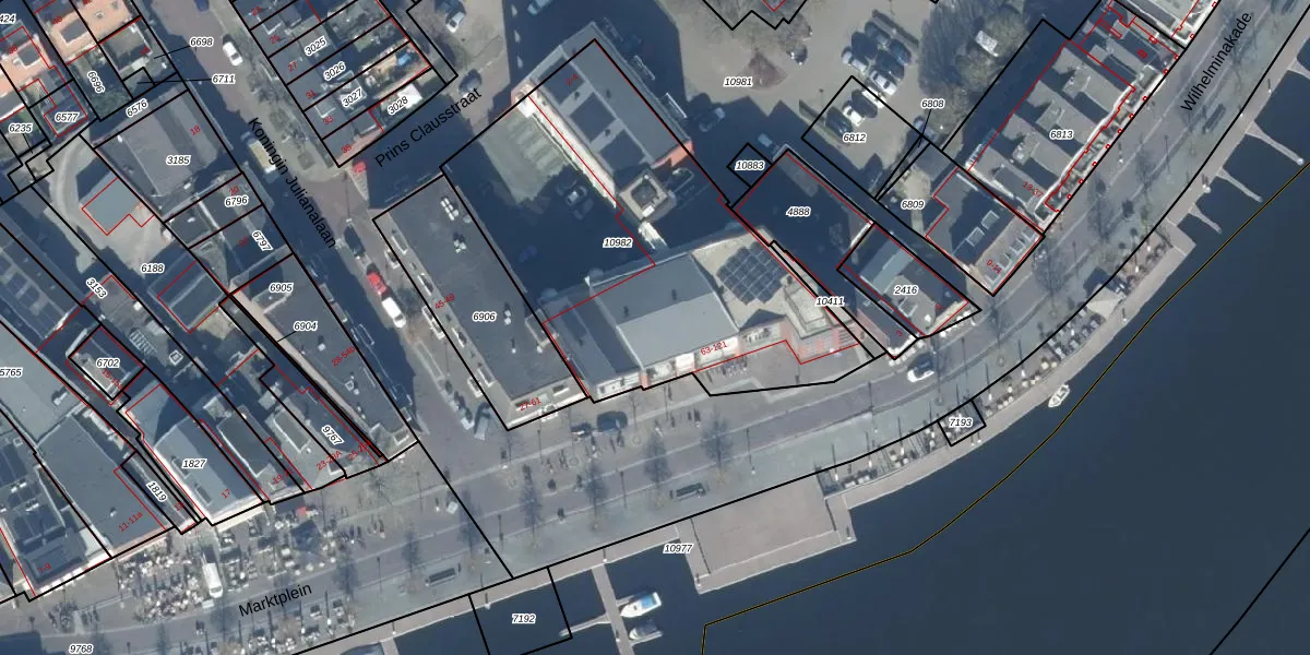 Het perceel waarop Marktplein 111 staat heeft een oppervlakte van 1825 m². Dit is een zeer groot perceel. De perceeloppervlakte wordt geregistreerd door het Kadaster. Gedetailleerde informatie over de maten van dit perceel kunt u vinden in het rapport Kadastrale kaart met maatvoering van Marktplein 111.