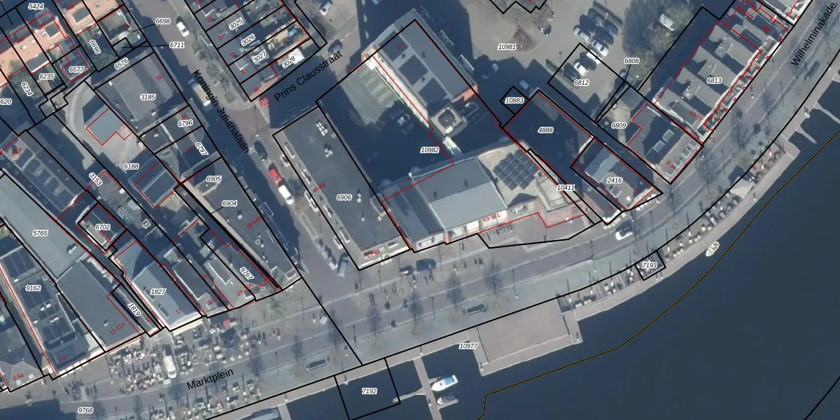 Het perceel waarop Marktplein 63-STAL staat heeft een oppervlakte van 1825 m². Dit is een zeer groot perceel. De perceeloppervlakte wordt geregistreerd door het Kadaster. Gedetailleerde informatie over de maten van dit perceel kunt u vinden in het rapport Kadastrale kaart met maatvoering van Marktplein 63-STAL.