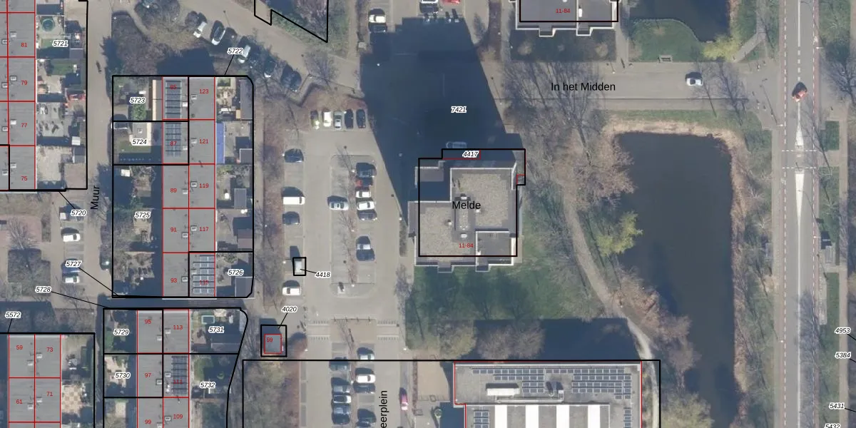 Het perceel waarop Melde 25 staat heeft een oppervlakte van 573 m². Dit is een groot perceel. De perceeloppervlakte wordt geregistreerd door het Kadaster. Gedetailleerde informatie over de maten van dit perceel kunt u vinden in het rapport Kadastrale kaart met maatvoering van Melde 25.