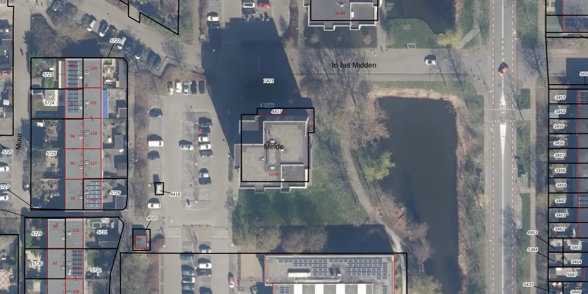 Het perceel waarop Melde 52 staat heeft een oppervlakte van 573 m². Dit is een groot perceel. De perceeloppervlakte wordt geregistreerd door het Kadaster. Gedetailleerde informatie over de maten van dit perceel kunt u vinden in het rapport Kadastrale kaart met maatvoering van Melde 52.