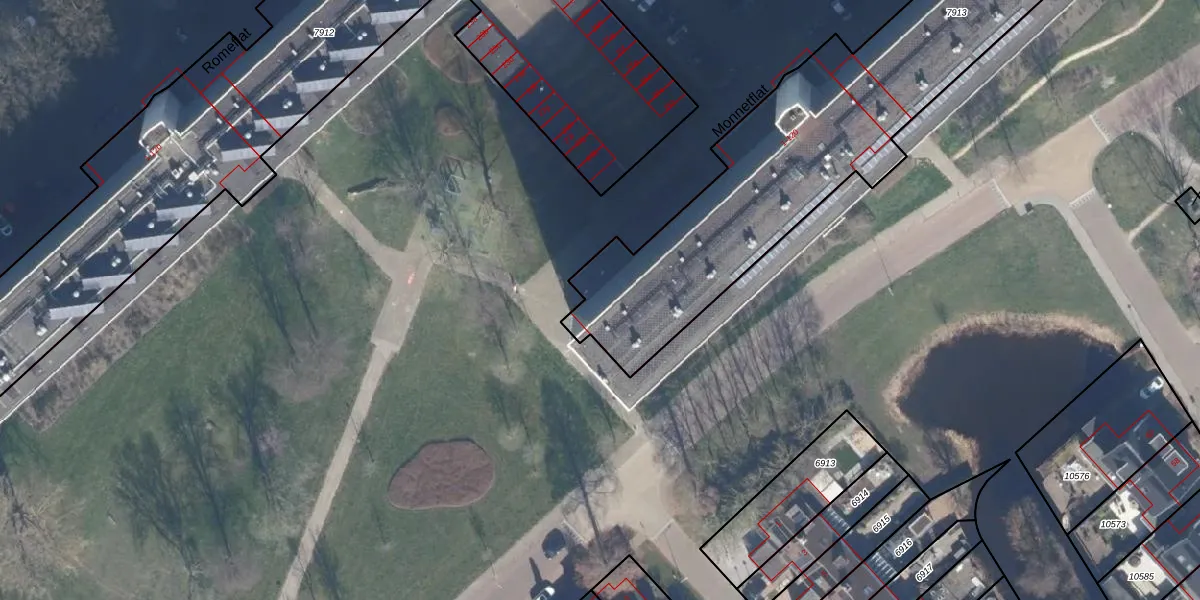 Het perceel waarop Monnetflat 24 staat heeft een oppervlakte van 1782 m². Dit is een zeer groot perceel. De perceeloppervlakte wordt geregistreerd door het Kadaster. Gedetailleerde informatie over de maten van dit perceel kunt u vinden in het rapport Kadastrale kaart met maatvoering van Monnetflat 24.