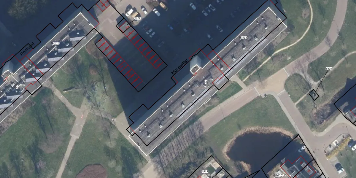 Het perceel waarop Monnetflat 33 staat heeft een oppervlakte van 1782 m². Dit is een zeer groot perceel. De perceeloppervlakte wordt geregistreerd door het Kadaster. Gedetailleerde informatie over de maten van dit perceel kunt u vinden in het rapport Kadastrale kaart met maatvoering van Monnetflat 33.