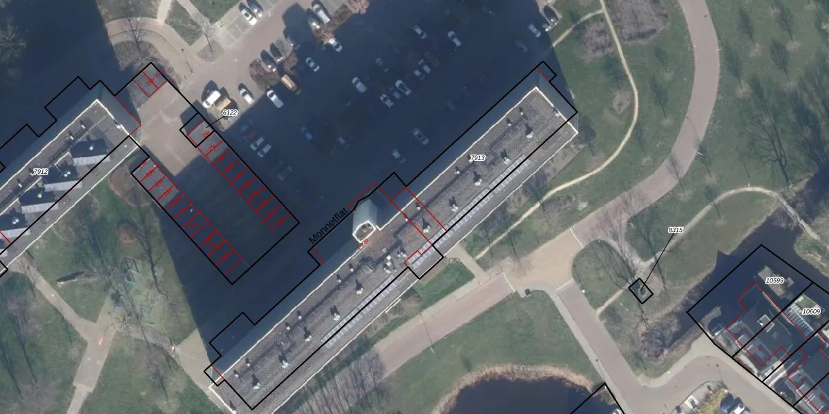 Het perceel waarop Monnetflat 54 staat heeft een oppervlakte van 1782 m². Dit is een zeer groot perceel. De perceeloppervlakte wordt geregistreerd door het Kadaster. Gedetailleerde informatie over de maten van dit perceel kunt u vinden in het rapport Kadastrale kaart met maatvoering van Monnetflat 54.