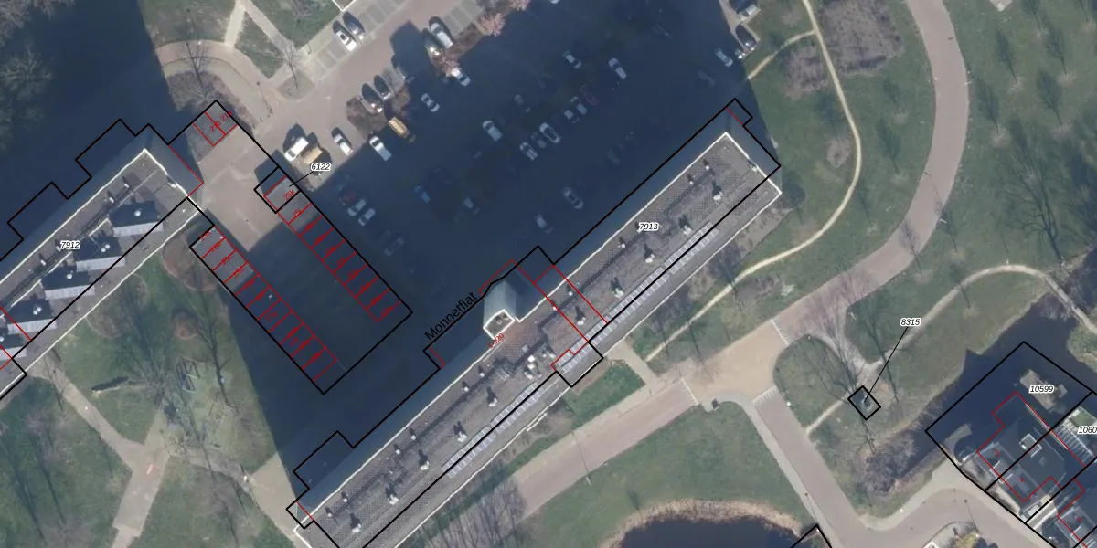 Het perceel waarop Monnetflat 6 staat heeft een oppervlakte van 1782 m². Dit is een zeer groot perceel. De perceeloppervlakte wordt geregistreerd door het Kadaster. Gedetailleerde informatie over de maten van dit perceel kunt u vinden in het rapport Kadastrale kaart met maatvoering van Monnetflat 6.