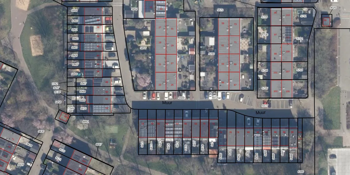 Het perceel waarop Muur 25 staat heeft een oppervlakte van 1940 m². Dit is een zeer groot perceel. De perceeloppervlakte wordt geregistreerd door het Kadaster. Gedetailleerde informatie over de maten van dit perceel kunt u vinden in het rapport Kadastrale kaart met maatvoering van Muur 25.