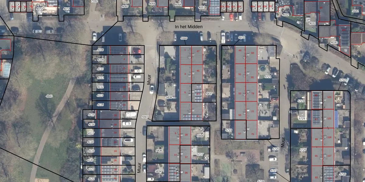Het perceel waarop Muur 5 staat heeft een oppervlakte van 1202 m². Dit is een zeer groot perceel. De perceeloppervlakte wordt geregistreerd door het Kadaster. Gedetailleerde informatie over de maten van dit perceel kunt u vinden in het rapport Kadastrale kaart met maatvoering van Muur 5.