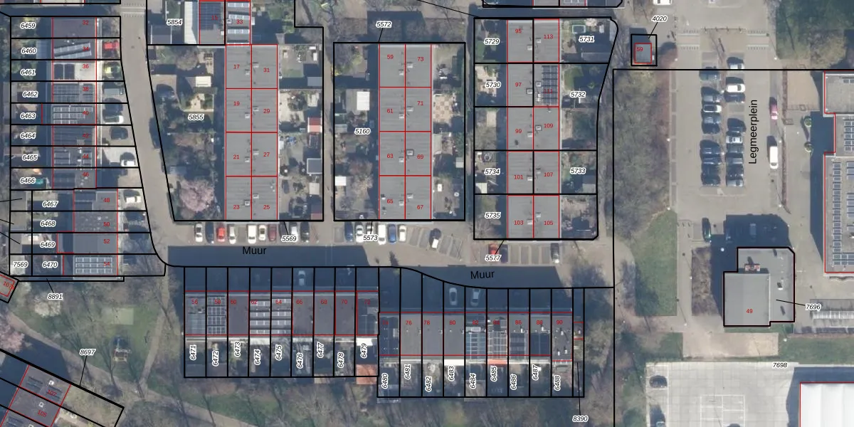 Het perceel waarop Muur 67 staat heeft een oppervlakte van 1275 m². Dit is een zeer groot perceel. De perceeloppervlakte wordt geregistreerd door het Kadaster. Gedetailleerde informatie over de maten van dit perceel kunt u vinden in het rapport Kadastrale kaart met maatvoering van Muur 67.