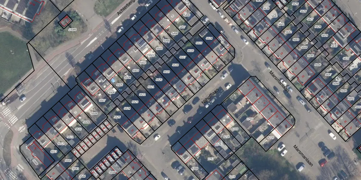 Het perceel waarop Nijhofflaan 12 staat heeft een oppervlakte van 156 m². Dit is een middelgroot perceel. De perceeloppervlakte wordt geregistreerd door het Kadaster. Gedetailleerde informatie over de maten van dit perceel kunt u vinden in het rapport Kadastrale kaart met maatvoering van Nijhofflaan 12.