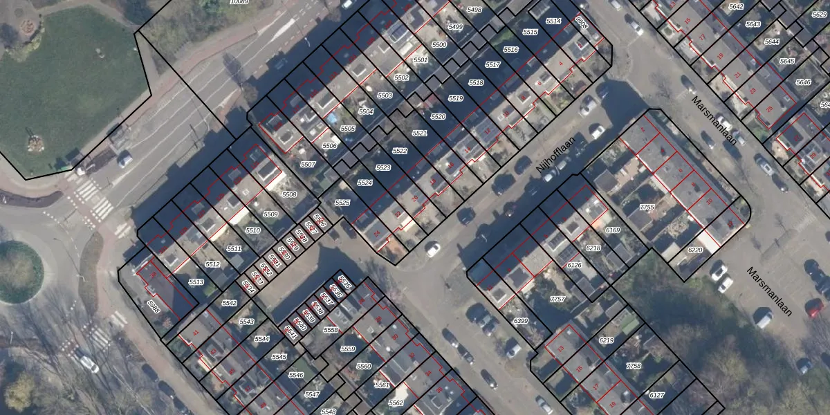 Het perceel waarop Nijhofflaan 20 staat heeft een oppervlakte van 156 m². Dit is een middelgroot perceel. De perceeloppervlakte wordt geregistreerd door het Kadaster. Gedetailleerde informatie over de maten van dit perceel kunt u vinden in het rapport Kadastrale kaart met maatvoering van Nijhofflaan 20.