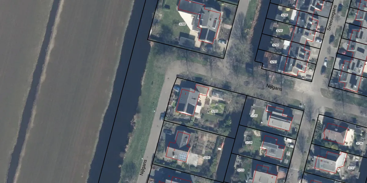 Het perceel waarop Nijlgans 1 staat heeft een oppervlakte van 985 m². Dit is een groot perceel. De perceeloppervlakte wordt geregistreerd door het Kadaster. Gedetailleerde informatie over de maten van dit perceel kunt u vinden in het rapport Kadastrale kaart met maatvoering van Nijlgans 1.