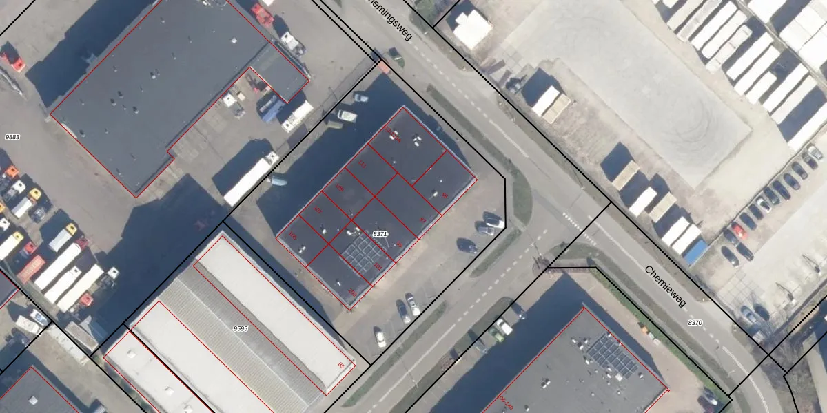 Het perceel waarop Ondernemingsweg 97 staat heeft een oppervlakte van 2715 m². Dit is een zeer groot perceel. De perceeloppervlakte wordt geregistreerd door het Kadaster. Gedetailleerde informatie over de maten van dit perceel kunt u vinden in het rapport Kadastrale kaart met maatvoering van Ondernemingsweg 97.