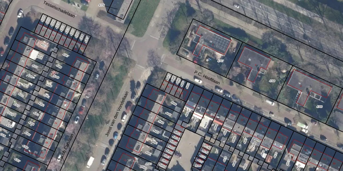 Het perceel waarop P.C. Hooftlaan 2-b staat heeft een oppervlakte van 35 m². Dit is een klein perceel. De perceeloppervlakte wordt geregistreerd door het Kadaster. Gedetailleerde informatie over de maten van dit perceel kunt u vinden in het rapport Kadastrale kaart met maatvoering van P.C. Hooftlaan 2-b.