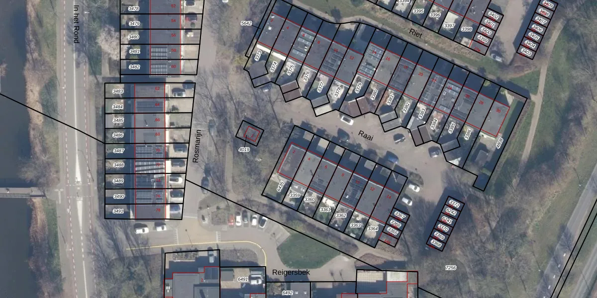 Het perceel waarop Raai 2 staat heeft een oppervlakte van 195 m². Dit is een middelgroot perceel. De perceeloppervlakte wordt geregistreerd door het Kadaster. Gedetailleerde informatie over de maten van dit perceel kunt u vinden in het rapport Kadastrale kaart met maatvoering van Raai 2.