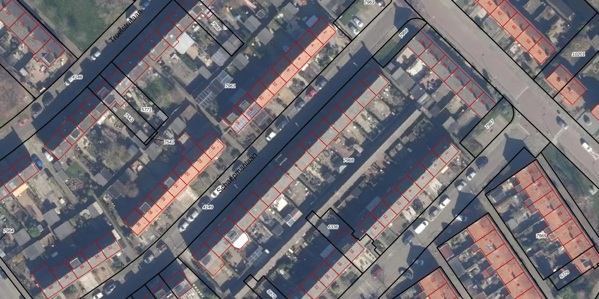 Het perceel waarop Schaepmanlaan 13 staat heeft een oppervlakte van 4898 m². Dit is een zeer groot perceel. De perceeloppervlakte wordt geregistreerd door het Kadaster. Gedetailleerde informatie over de maten van dit perceel kunt u vinden in het rapport Kadastrale kaart met maatvoering van Schaepmanlaan 13.