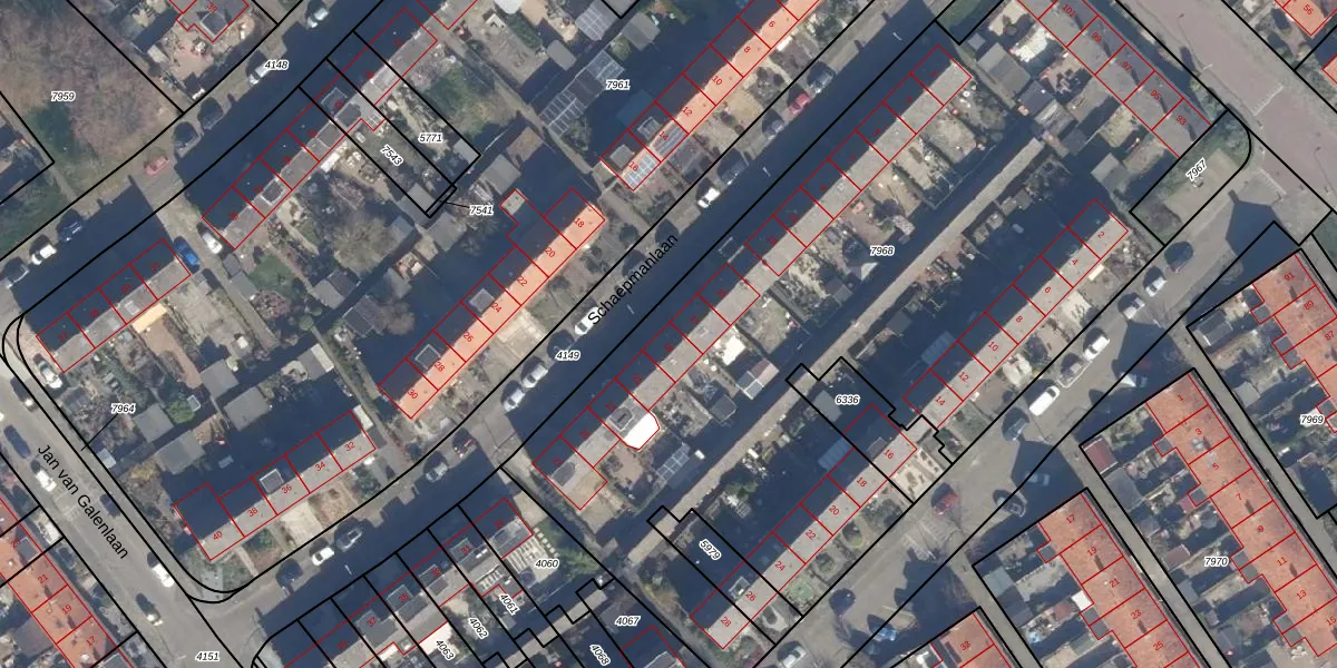 Het perceel waarop Schaepmanlaan 19 staat heeft een oppervlakte van 4898 m². Dit is een zeer groot perceel. De perceeloppervlakte wordt geregistreerd door het Kadaster. Gedetailleerde informatie over de maten van dit perceel kunt u vinden in het rapport Kadastrale kaart met maatvoering van Schaepmanlaan 19.