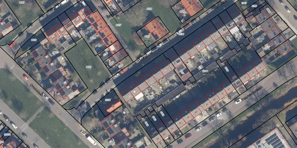Het perceel waarop Talmalaan 23 staat heeft een oppervlakte van 5634 m². Dit is een zeer groot perceel. De perceeloppervlakte wordt geregistreerd door het Kadaster. Gedetailleerde informatie over de maten van dit perceel kunt u vinden in het rapport Kadastrale kaart met maatvoering van Talmalaan 23.