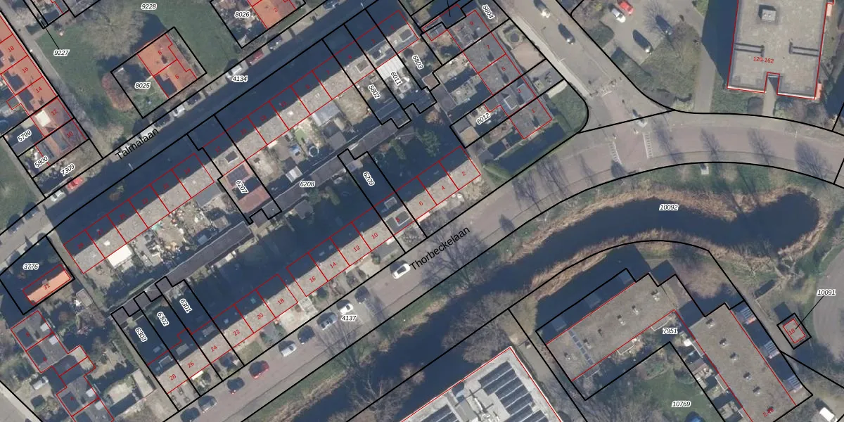 Het perceel waarop Thorbeckelaan 6 staat heeft een oppervlakte van 5634 m². Dit is een zeer groot perceel. De perceeloppervlakte wordt geregistreerd door het Kadaster. Gedetailleerde informatie over de maten van dit perceel kunt u vinden in het rapport Kadastrale kaart met maatvoering van Thorbeckelaan 6.