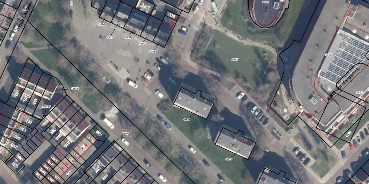 Het adres is gelegen op perceel 4868 in de sectie B en de kadastrale gemeente Uithoorn. De kadastrale aanduiding is aldus UHN00-B-4868. Het perceel is kleiner dan gemiddeld in Uithoorn. Het perceel is 214 m² groot, terwijl het gemiddelde ligt op 1535,71 m². Het grootste perceel in de kadastrale gemeente is 22,5 ha. Het kleinste perceel heeft een oppervlakte van 0 m². Op het perceel zijn 10 adressen aanwezig. De laatste wijziging in het de Basisregistratie Kadaster (BRK) was op 25-05-2005.