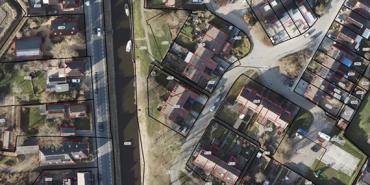 Het perceel waarop Aak 42 staat heeft een oppervlakte van 655 m². Dit is een groot perceel. De perceeloppervlakte wordt geregistreerd door het Kadaster. Gedetailleerde informatie over de maten van dit perceel kunt u vinden in het rapport Kadastrale kaart met maatvoering van Aak 42.
