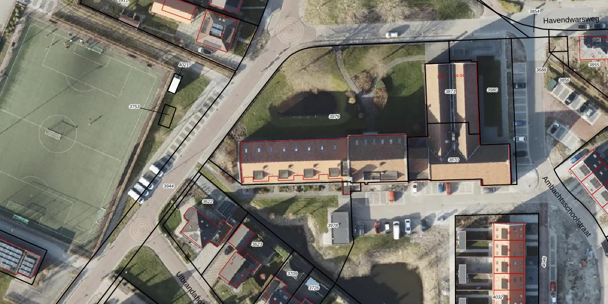 Het perceel waarop Ambachtsschoolstraat 20 staat heeft een oppervlakte van 2630 m². Dit is een zeer groot perceel. De perceeloppervlakte wordt geregistreerd door het Kadaster. Gedetailleerde informatie over de maten van dit perceel kunt u vinden in het rapport Kadastrale kaart met maatvoering van Ambachtsschoolstraat 20.