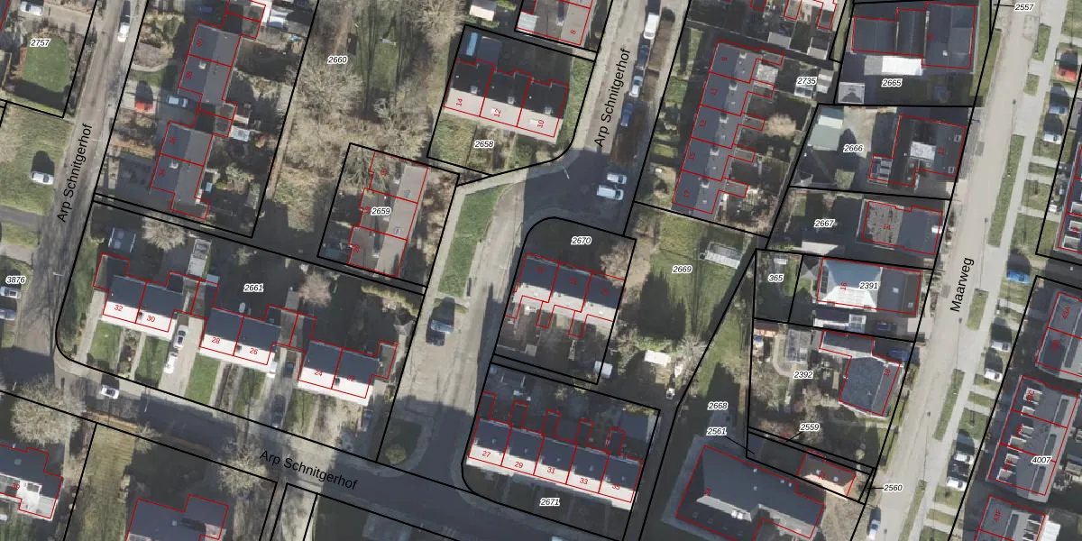 Het perceel waarop Arp Schnitgerhof 25 staat heeft een oppervlakte van 549 m². Dit is een groot perceel. De perceeloppervlakte wordt geregistreerd door het Kadaster. Gedetailleerde informatie over de maten van dit perceel kunt u vinden in het rapport Kadastrale kaart met maatvoering van Arp Schnitgerhof 25.