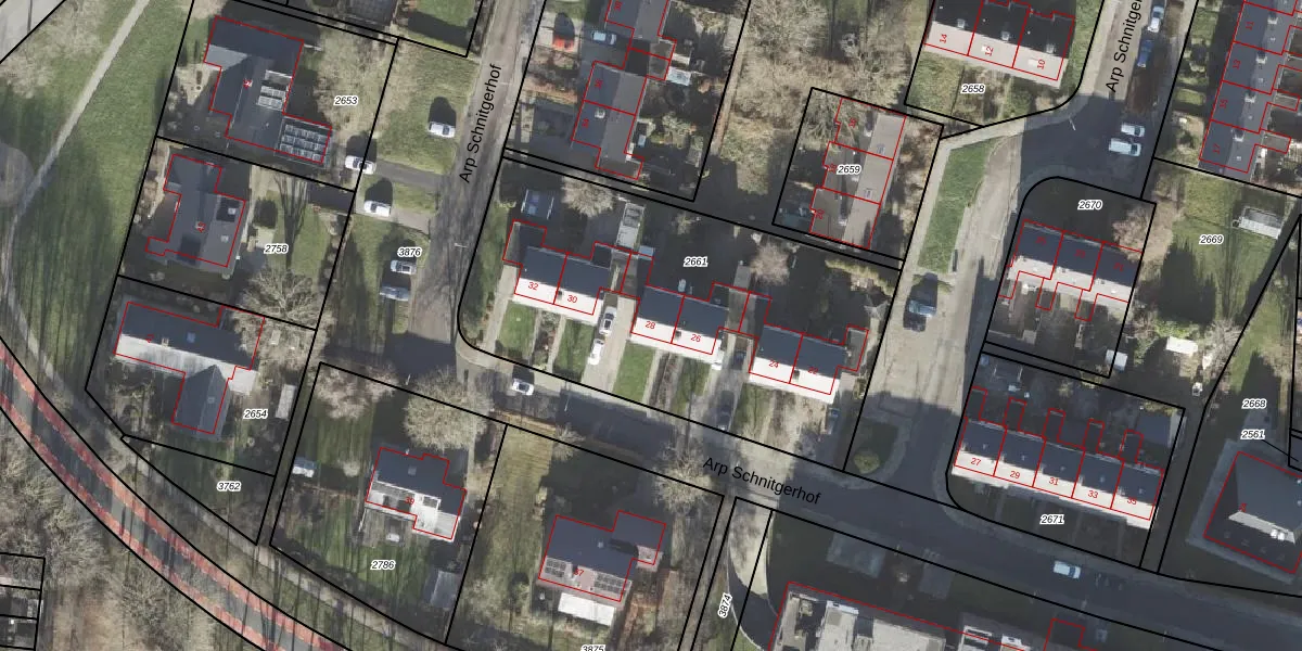 Het perceel waarop Arp Schnitgerhof 28 staat heeft een oppervlakte van 1957 m². Dit is een zeer groot perceel. De perceeloppervlakte wordt geregistreerd door het Kadaster. Gedetailleerde informatie over de maten van dit perceel kunt u vinden in het rapport Kadastrale kaart met maatvoering van Arp Schnitgerhof 28.
