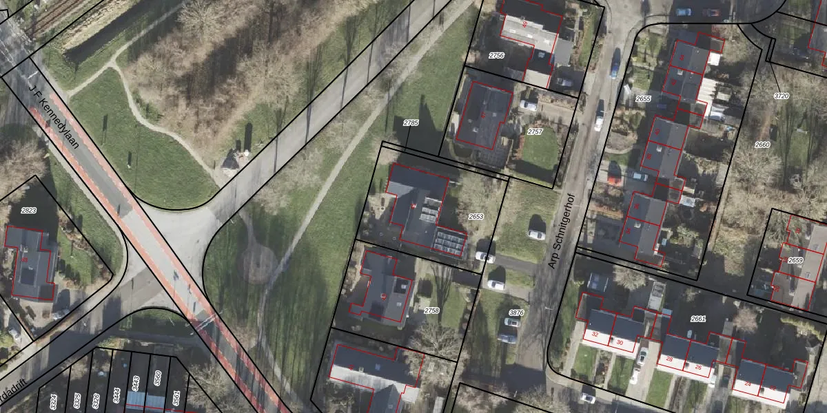 Het perceel waarop Arp Schnitgerhof 45 staat heeft een oppervlakte van 741 m². Dit is een groot perceel. De perceeloppervlakte wordt geregistreerd door het Kadaster. Gedetailleerde informatie over de maten van dit perceel kunt u vinden in het rapport Kadastrale kaart met maatvoering van Arp Schnitgerhof 45.