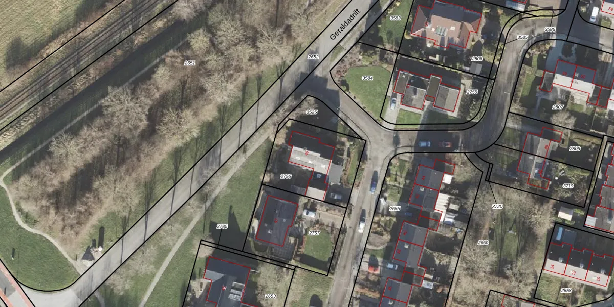 Het adres is gelegen op perceel 2756 in de sectie E en de kadastrale gemeente Uithuizen. De kadastrale aanduiding is aldus UHZ01-E-2756. Het perceel is 650 m² groot. Dat is kleiner dan de gemiddelde perceeloppervlakte in Uithuizen, dat op 4,2 ha ligt. Het grootste perceel in de kadastrale gemeente is 96,50 km². Het kleinste perceel heeft een oppervlakte van 0 m². Dit is het enige adres dat aanwezig is op het perceel. De huidige grenzen van het perceel zijn digitaal in de Basisregistratie Kadaster (BRK) geregistreerd op 17-09-2008.