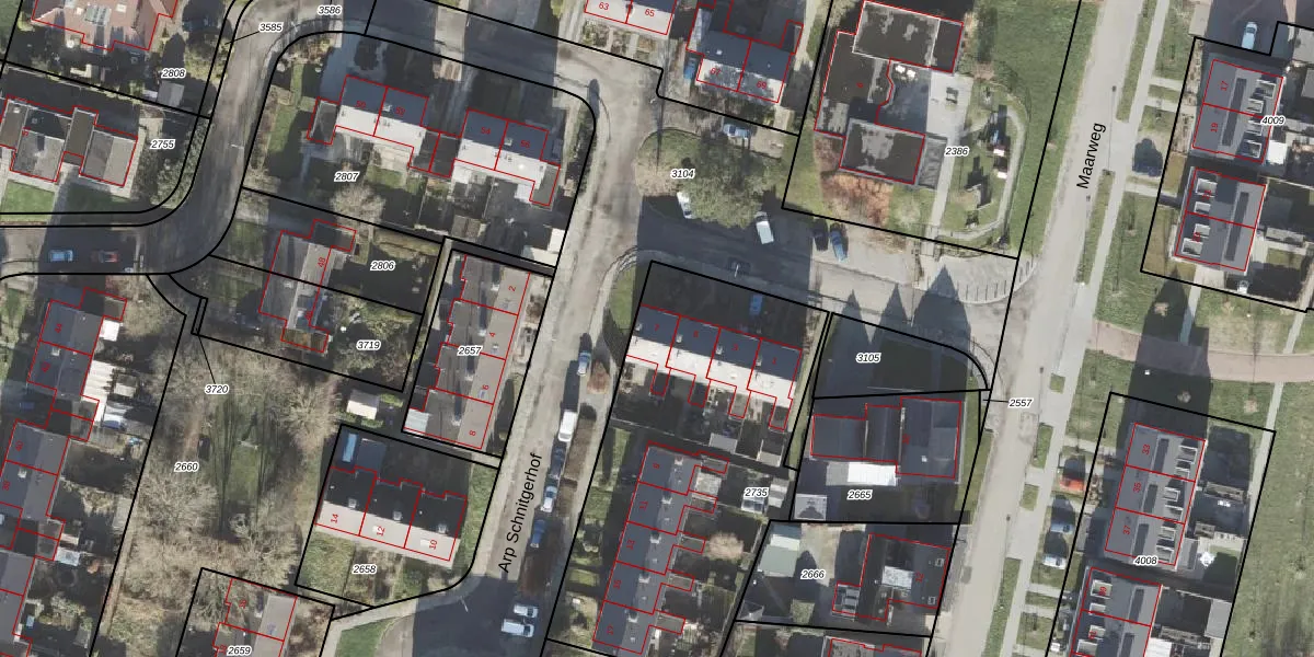 Het perceel waarop Arp Schnitgerhof 7 staat heeft een oppervlakte van 1653 m². Dit is een zeer groot perceel. De perceeloppervlakte wordt geregistreerd door het Kadaster. Gedetailleerde informatie over de maten van dit perceel kunt u vinden in het rapport Kadastrale kaart met maatvoering van Arp Schnitgerhof 7.
