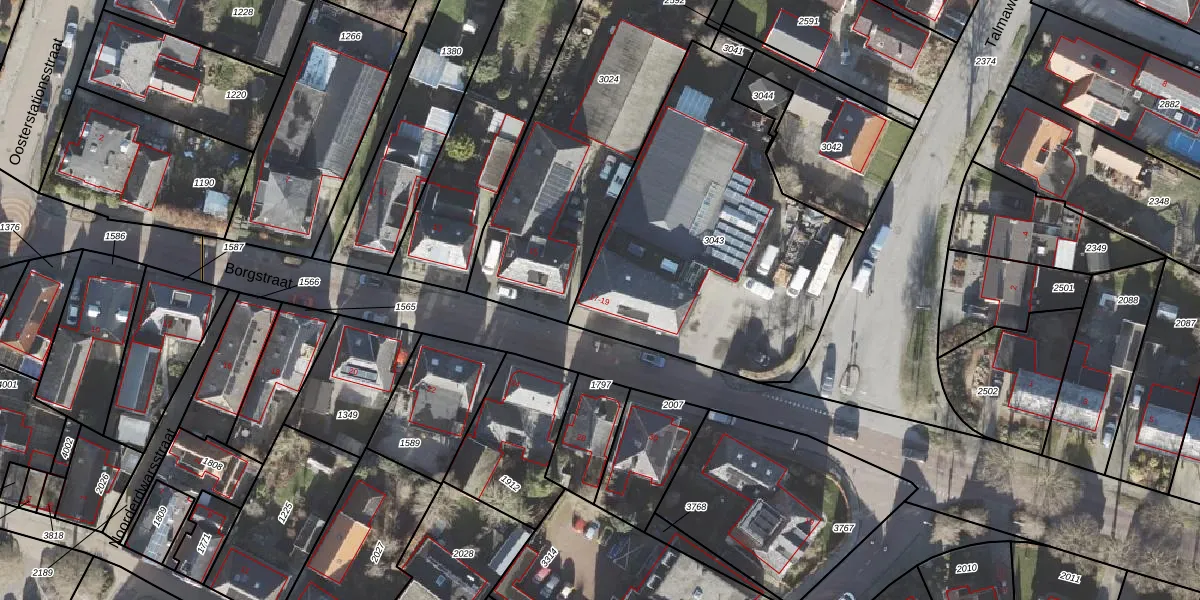 Het perceel waarop Borgstraat 17 staat heeft een oppervlakte van 1553 m². Dit is een zeer groot perceel. De perceeloppervlakte wordt geregistreerd door het Kadaster. Gedetailleerde informatie over de maten van dit perceel kunt u vinden in het rapport Kadastrale kaart met maatvoering van Borgstraat 17.