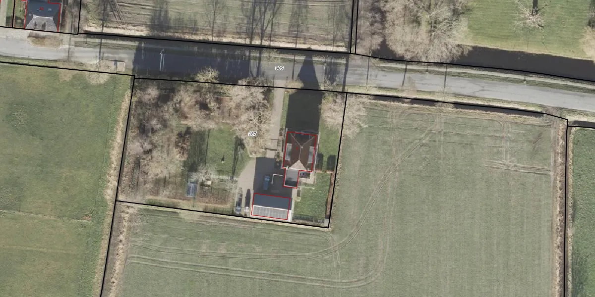 Het adres is gelegen op perceel 187 in de sectie H en de kadastrale gemeente Uithuizen. De kadastrale aanduiding is aldus UHZ01-H-187. De gemiddelde perceelgrootte in Uithuizen is 4,2 ha. Dit perceel is kleiner: de perceeloppervlakte bedraagt 3155 m². Het grootste perceel in de kadastrale gemeente is 96,50 km². Het kleinste perceel heeft een oppervlakte van 0 m². Op het perceel bevinden zich geen andere adressen. De huidige grenzen van het perceel zijn digitaal in de Basisregistratie Kadaster (BRK) geregistreerd op 11-04-2007.