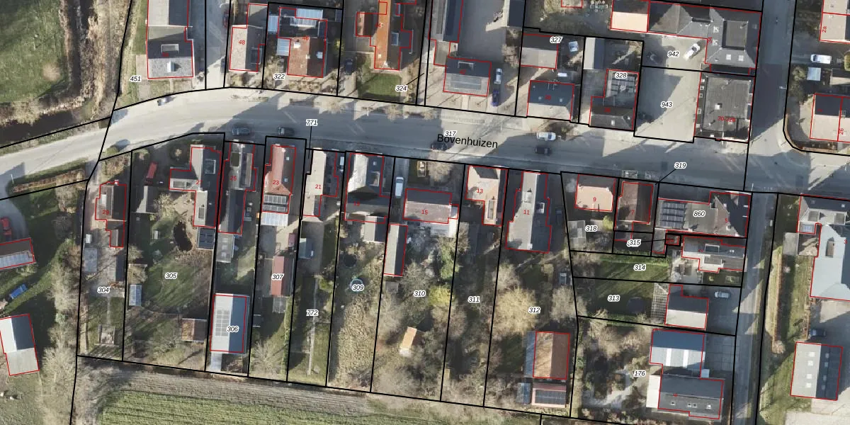 Het perceel waarop Bovenhuizen 15 staat heeft een oppervlakte van 928 m². Dit is een groot perceel. De perceeloppervlakte wordt geregistreerd door het Kadaster. Gedetailleerde informatie over de maten van dit perceel kunt u vinden in het rapport Kadastrale kaart met maatvoering van Bovenhuizen 15.
