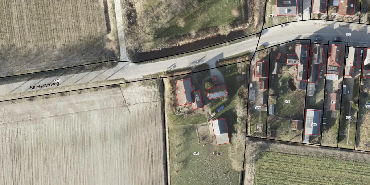 Gebruik de zoekbalk of klik op een perceel voor informatie over de adressen binnen dit perceel.
