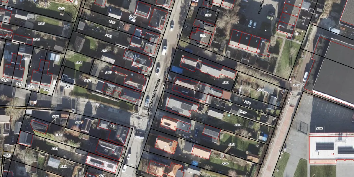 Het perceel waarop Departementsstraat 16 staat heeft een oppervlakte van 407 m². Dit is een groot perceel. De perceeloppervlakte wordt geregistreerd door het Kadaster. Gedetailleerde informatie over de maten van dit perceel kunt u vinden in het rapport Kadastrale kaart met maatvoering van Departementsstraat 16.