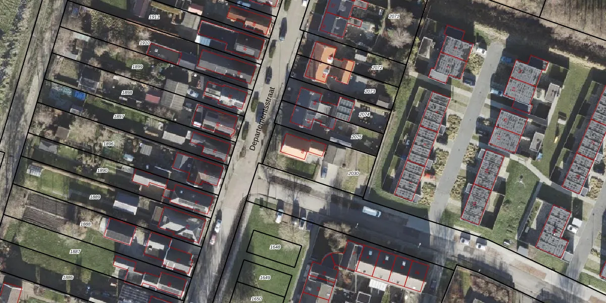 Het perceel waarop Departementsstraat 60 staat heeft een oppervlakte van 498 m². Dit is een groot perceel. De perceeloppervlakte wordt geregistreerd door het Kadaster. Gedetailleerde informatie over de maten van dit perceel kunt u vinden in het rapport Kadastrale kaart met maatvoering van Departementsstraat 60.
