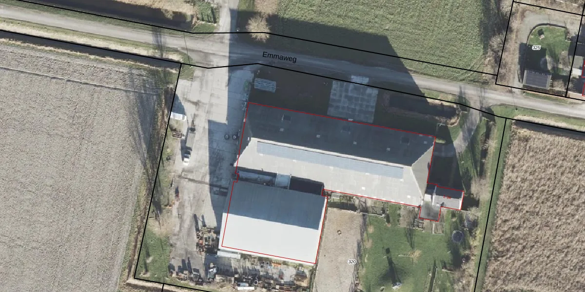 Het perceel waarop Emmaweg 1-A staat heeft een oppervlakte van 8935 m². Dit is een zeer groot perceel. De perceeloppervlakte wordt geregistreerd door het Kadaster. Gedetailleerde informatie over de maten van dit perceel kunt u vinden in het rapport Kadastrale kaart met maatvoering van Emmaweg 1-A.