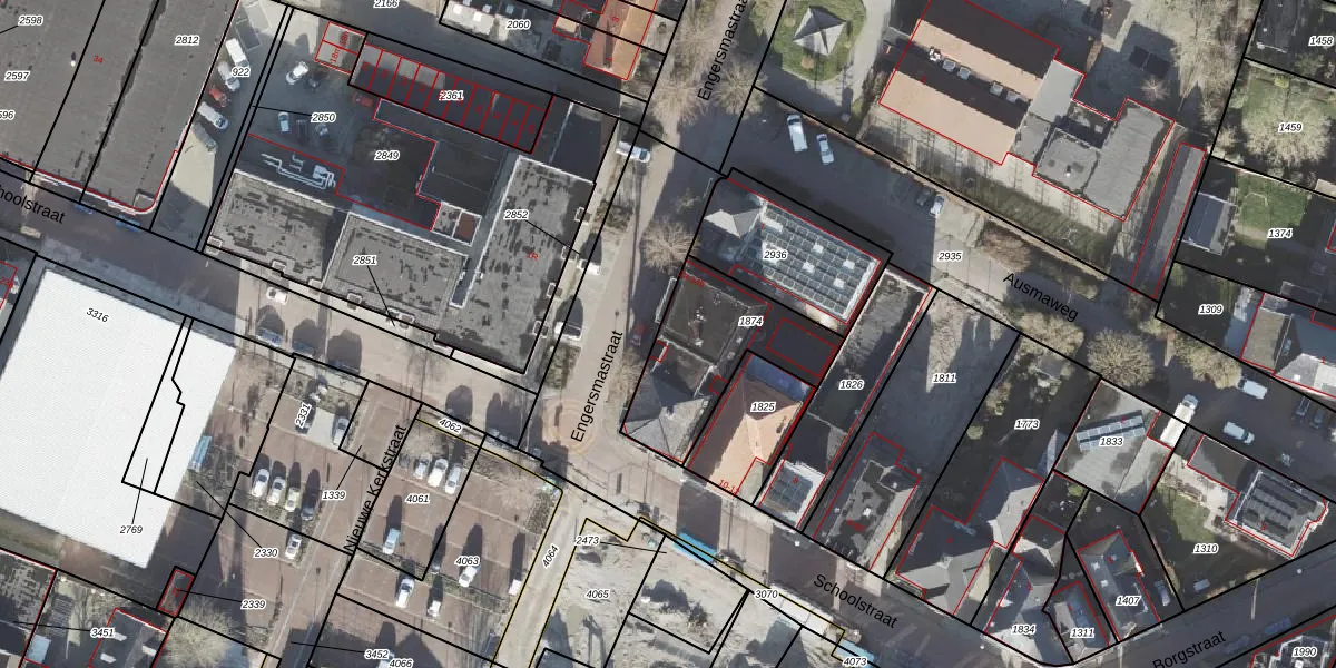 Het perceel waarop Engersmastraat 2-E staat heeft een oppervlakte van 458 m². Dit is een groot perceel. De perceeloppervlakte wordt geregistreerd door het Kadaster. Gedetailleerde informatie over de maten van dit perceel kunt u vinden in het rapport Kadastrale kaart met maatvoering van Engersmastraat 2-E.