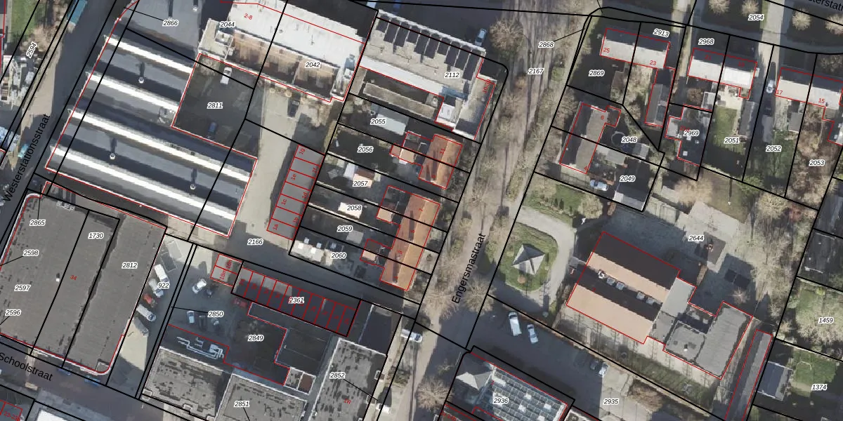 Gebruik de zoekbalk of klik op een perceel voor informatie over de adressen binnen dit perceel.