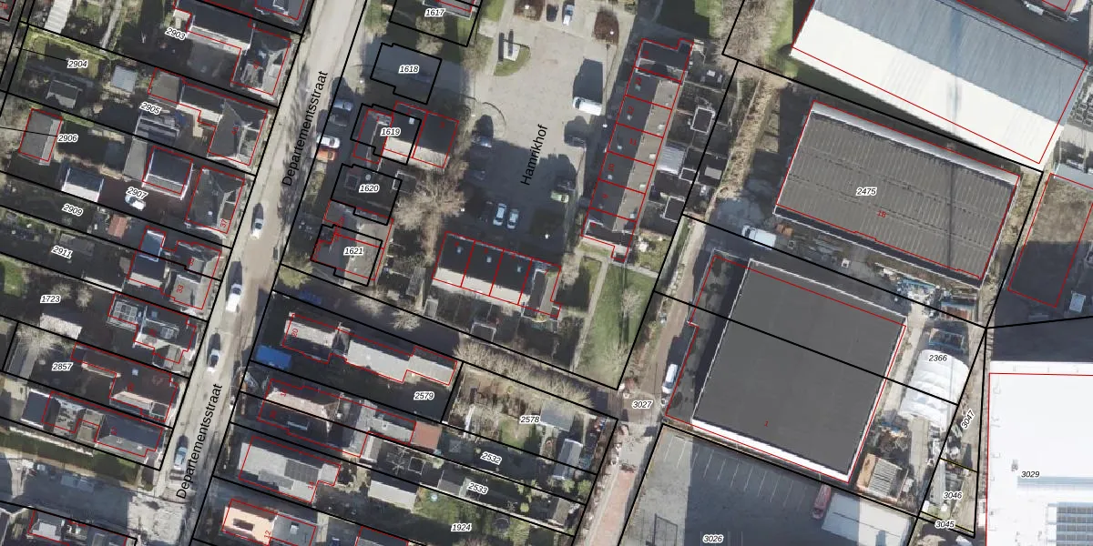 Het perceel waarop Hamrikhof 7 staat heeft een oppervlakte van 1,0 ha. Dit is een zeer groot perceel. De perceeloppervlakte wordt geregistreerd door het Kadaster. Gedetailleerde informatie over de maten van dit perceel kunt u vinden in het rapport Kadastrale kaart met maatvoering van Hamrikhof 7.