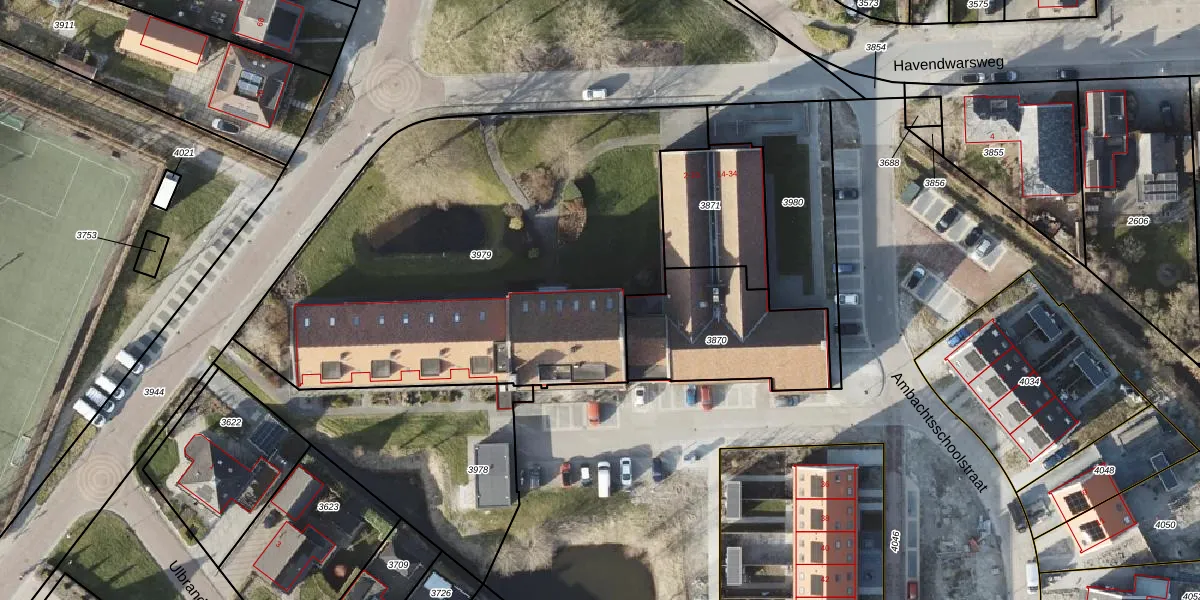 Het perceel waarop Havendwarsweg 2-A staat heeft een oppervlakte van 2630 m². Dit is een zeer groot perceel. De perceeloppervlakte wordt geregistreerd door het Kadaster. Gedetailleerde informatie over de maten van dit perceel kunt u vinden in het rapport Kadastrale kaart met maatvoering van Havendwarsweg 2-A.