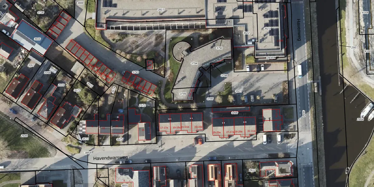 Het perceel waarop Havenweg 16-E staat heeft een oppervlakte van 77 m². Dit is een klein perceel. De perceeloppervlakte wordt geregistreerd door het Kadaster. Gedetailleerde informatie over de maten van dit perceel kunt u vinden in het rapport Kadastrale kaart met maatvoering van Havenweg 16-E.