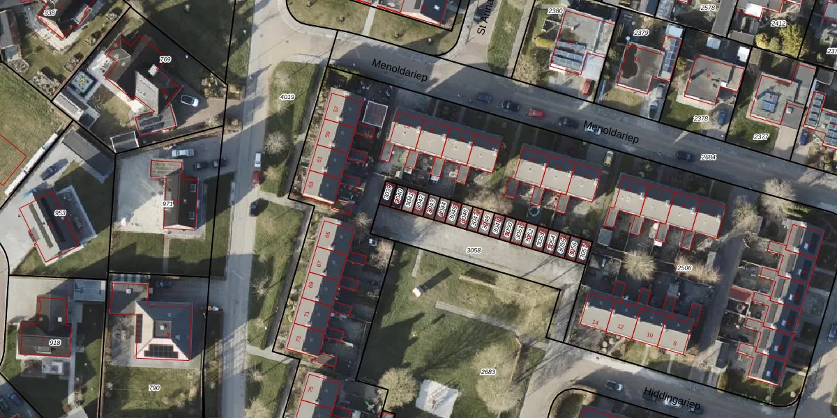 Gebruik de zoekbalk of klik op een perceel voor informatie over de adressen binnen dit perceel.